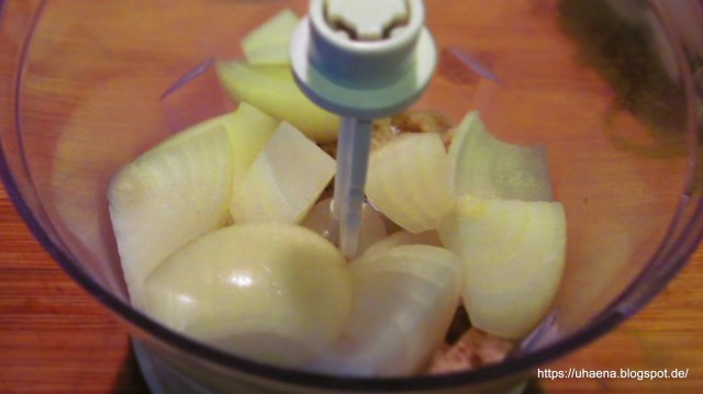 • Средата на една от филиите надробих в блендера и заедно с главата кромид лук смлях.