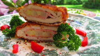 Оказа се, че у нас много обичаме този вид пълнен шницел – кордон бльо. Вече съм публикувала рецепта за класическото кордон бльо – с шунка и кашкавал /рецептата е тук/ и гръцката вариация на това ястие /рецептата е тук/.