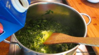 • Заливам с прясното мляко и оставям да поври около 5 – 6 минути.