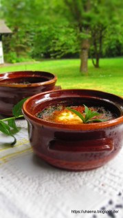 • Във всяко гюведже чуквам от ниско по едно яйце като се старая да е точно в средата му.