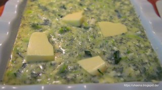- Изсипвам всичко в подходяща по размер тавичка, която предварително намазвам с масло или олио.