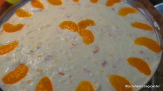 - Декорирам с отделените мандарини и оставям в хладилника за около 2 часа да стегне крема.