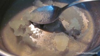 - Загрявам желатина за кратко на котлона и непрекъснато разбърквам.