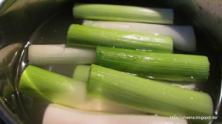 - Оцеждам от водата и оставям да се охлади. После много внимателно с леко притискане изкарвам и последното количество вода останало между пластовете листа на праза. Трябва да внимавате да не промените формата на лука.