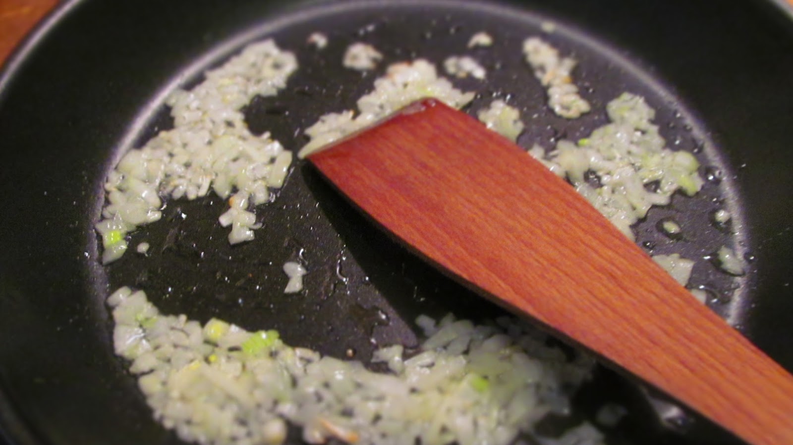 - В 1 с. л. олио изпържвам до омекване ситно нарязаната глава кромид лук.