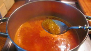- За да омекотя още малко вкуса на доматите, добавям супената лъжица мед. Разбърквам.