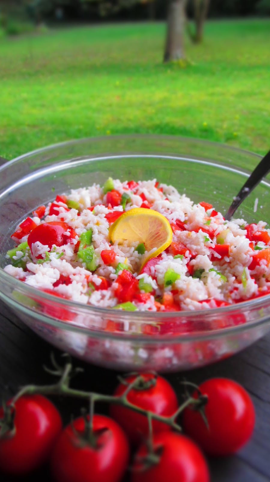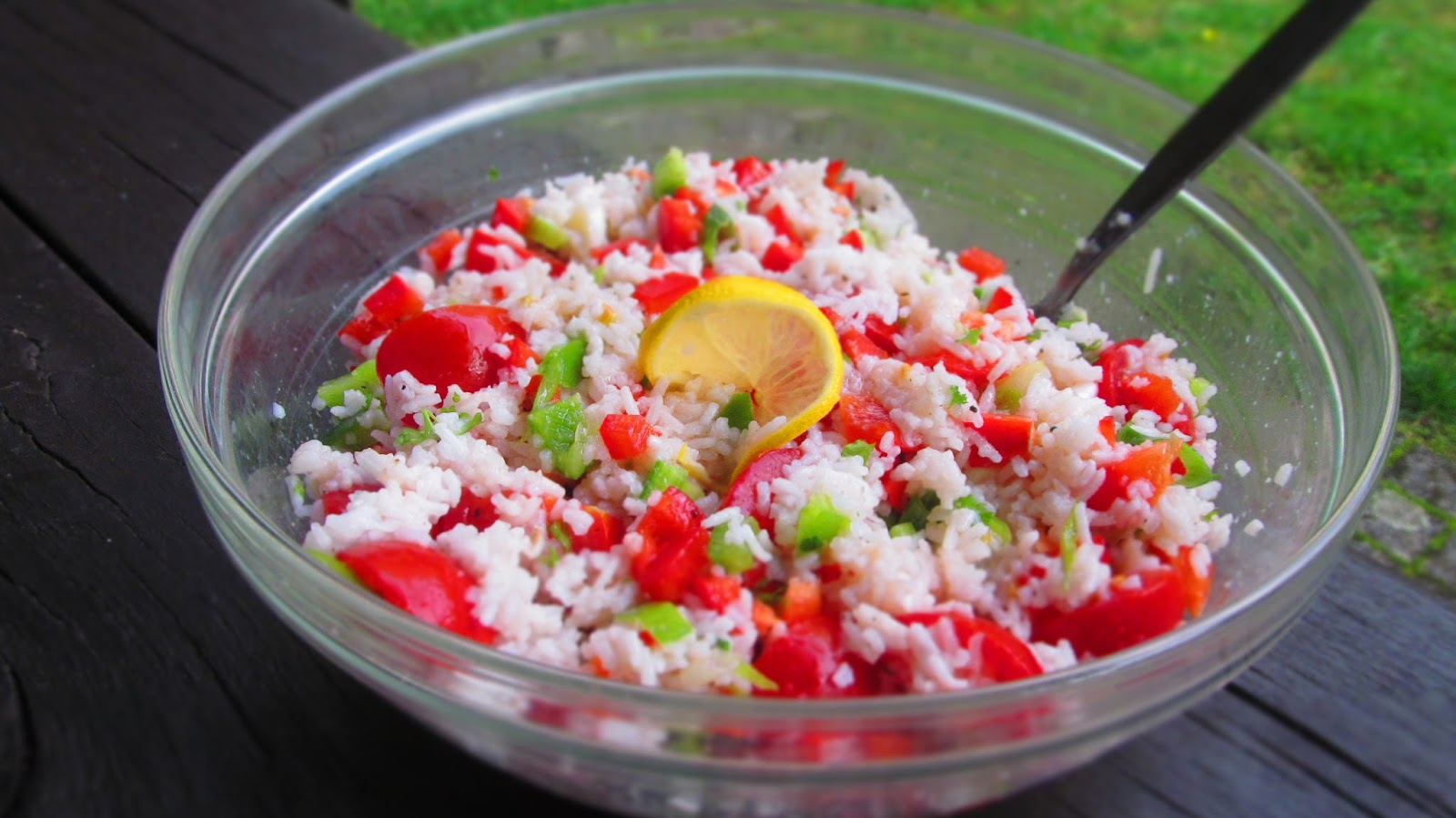 Днес разнообразихме със салата с ориз. Тя може да се сервира и като предястие или пък гарнитура. Но това Вие решавате.