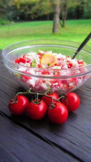 Както знаете, обичаме да разнообразяваме салатите. А ние редуваме така: шопска салата, салата с жито /рецепта тук/, шопска салата, салата с киноа /рецепта тук/, шопска салата, салата с булгур /рецепта тук/, шопска салата и…т. н. Най-обичана си остава шопската салата, но пък експериментираме у дома и с модерните сега салати.