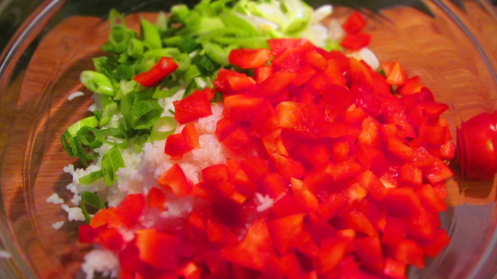 • Добавям нарязаните на кубчета чушки.