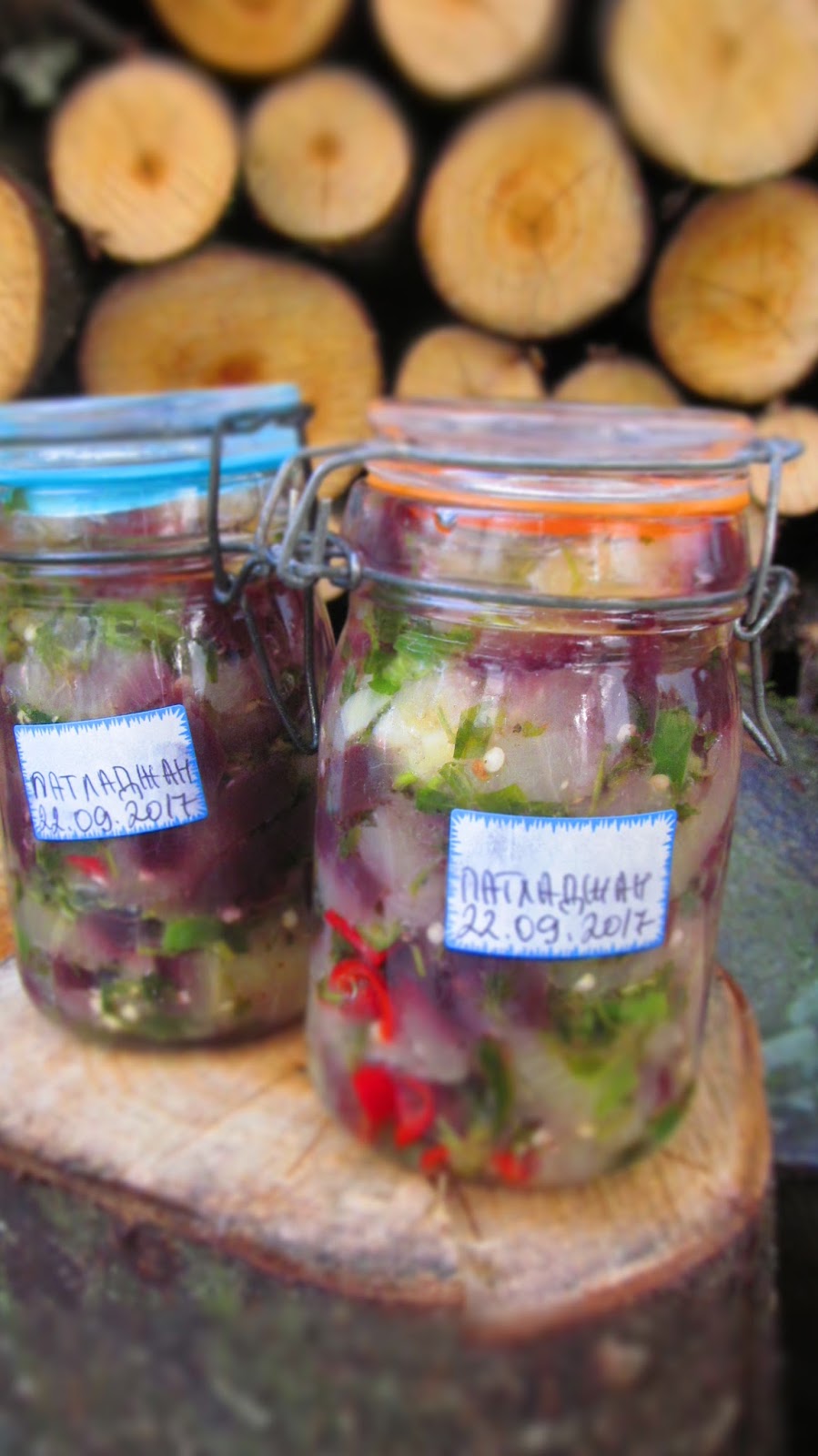Правим си вкусна лютеница /рецепта тук/, слагаме си по една кисела зелка целогодишно /рецепта тук/, правим лютивка, кисела туршия /рецепта тук/, а сега и вкусни кисели патладжани.