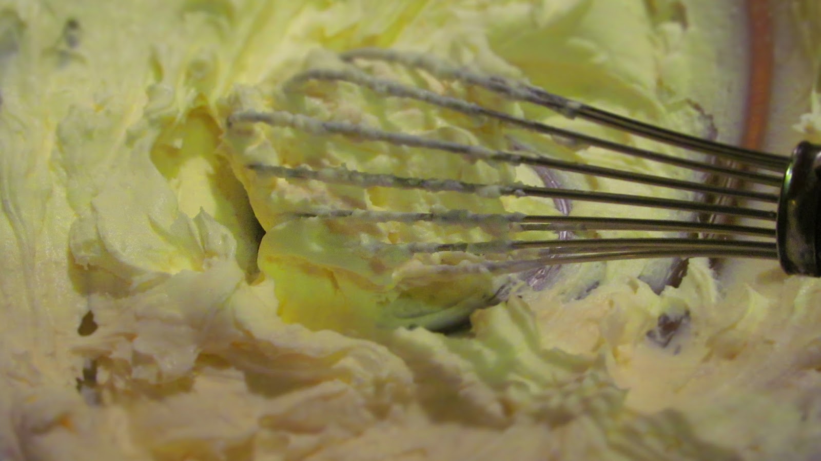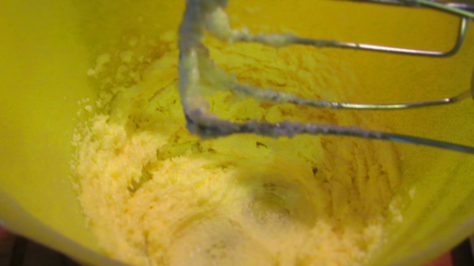 • Маслото и 125 гр от захарта разбивам с помощта на миксер до крем.