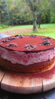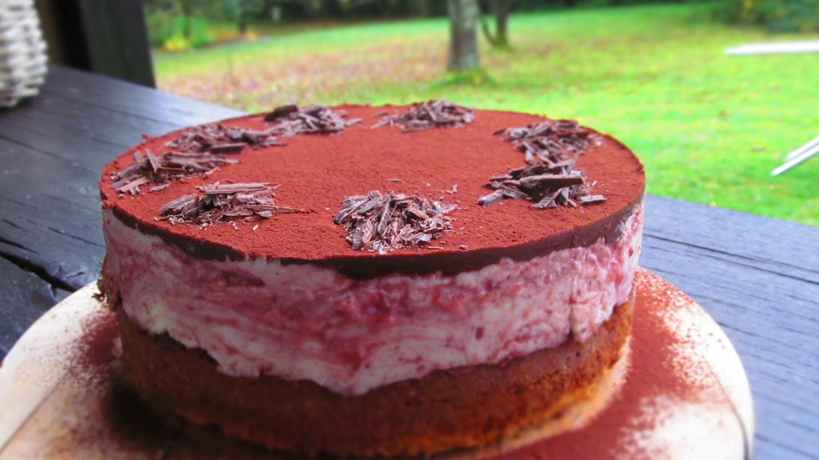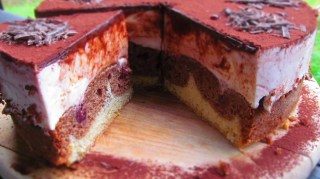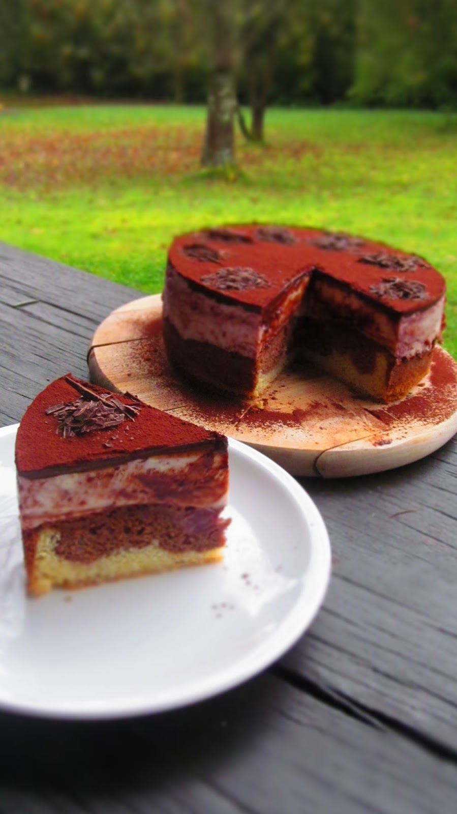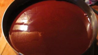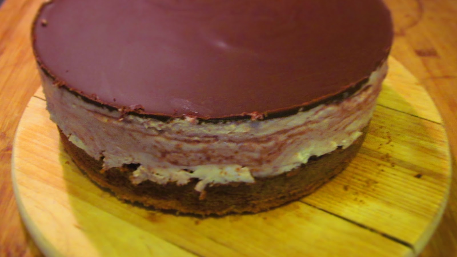 • Разтопения шоколад изсипвам върху охладения и стегнат крем. Охлаждам.