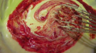 • Най-накрая добавям пюрето от череши като разбърквам съвсем леко.