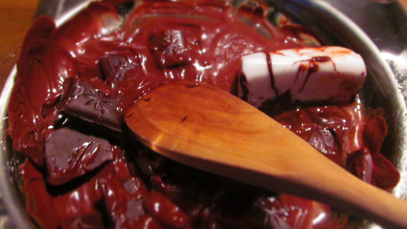 • На водна баня разтопявам още 125 гр от  шоколада и 25 гр кокосова мазнина.