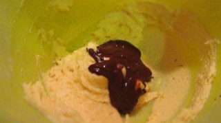 • Към останалата част от тестото добавям разтопения шоколад. Разбивам.