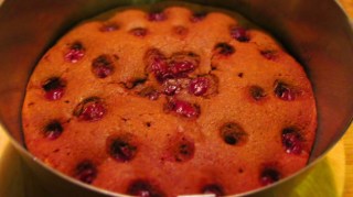 • Върху кафявото тесто подреждам изцедените черешите като отделям около 100 гр от тях в купичка и изпичам сладкиша в предварително загрята до 175 градуса фурна за около 30 минути.