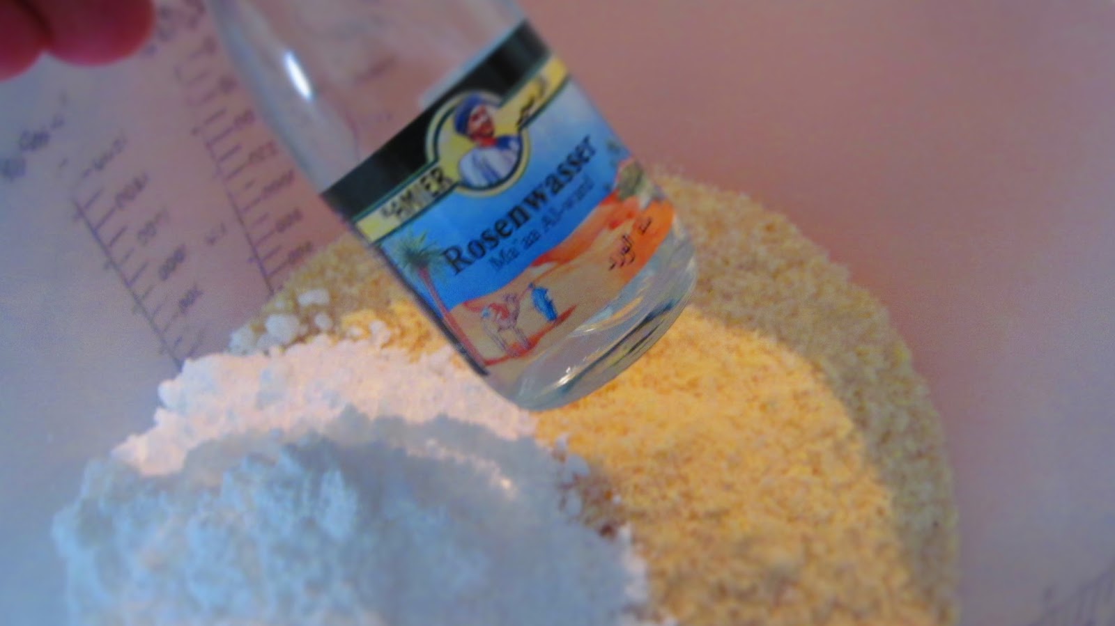 Но пък с няколко думи ще Ви разкажа за стандартната направа, според немските рецепти. Бадемови ядки се сваряват за 2 минути във вода. Още топли се обелват. Смилат се в блендер. Смесват се с пудрата захар и розовата вода. Омесват се на тесто. Това е!