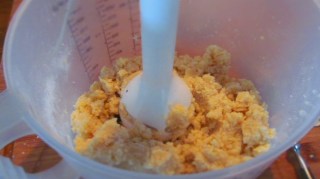 - С помощта на пасатора се опитах да омеся тестото. Не се получи много добре и го доомесих на ръка. Ако имате подходящ блендер опитайте с него или пък с миксера, но с накрайниците за тесто.