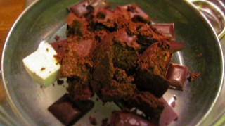 - В купата начупва шоколада и добавям кокосовата мазнина /заменя се и с олио/.