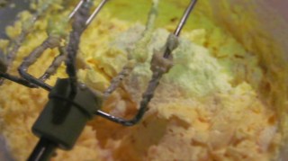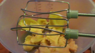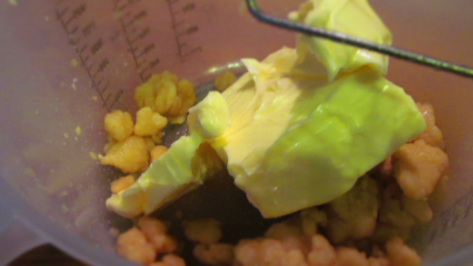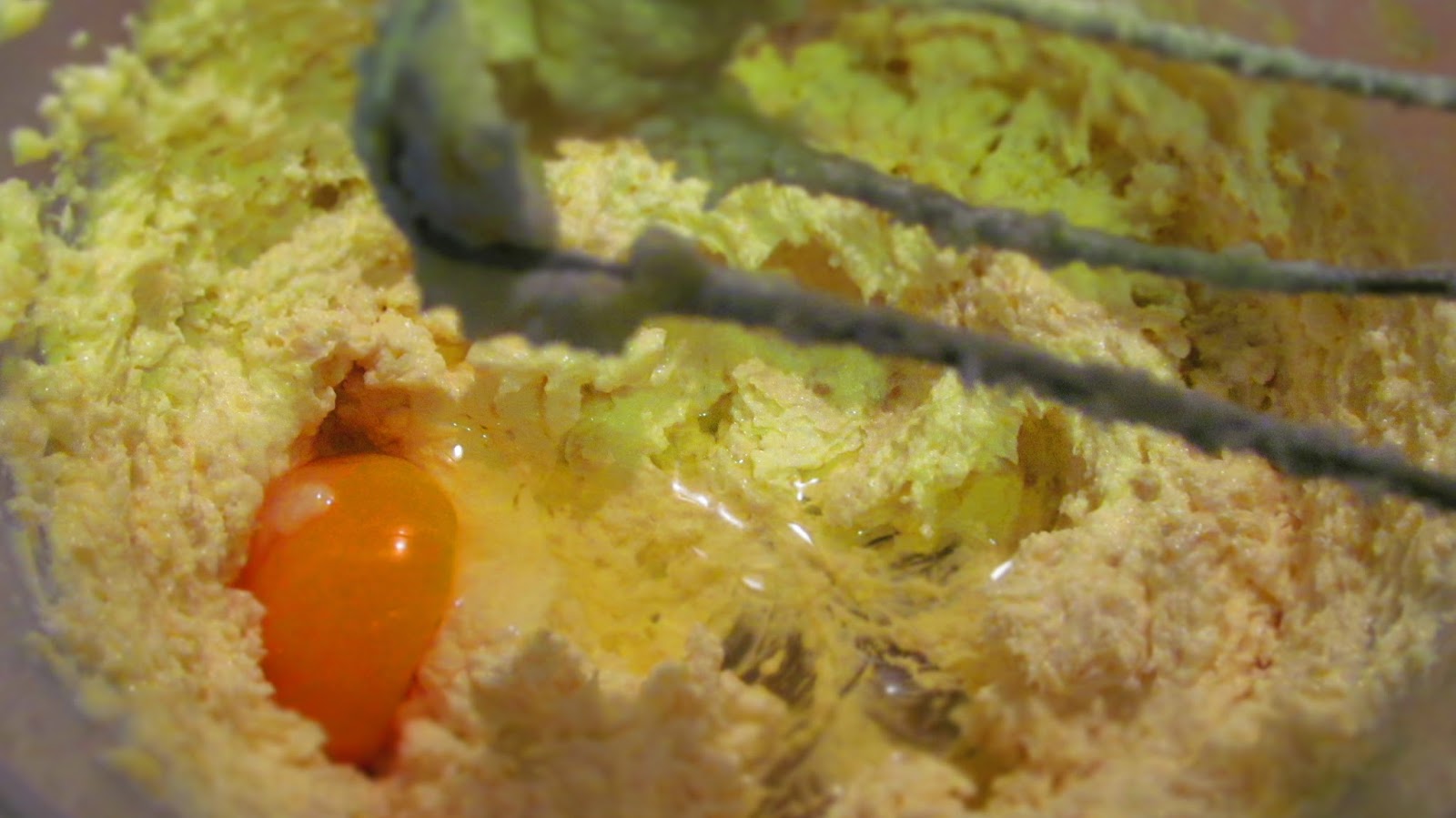 - Сместта все още ми стои на бучки, но поне не са така големи. Добавям яйцата, но едно по едно. Чуквам едно яйце – разбивам. Чуквам второто яйце – разбивам. И така до изчерпване на всичките яйца. Разбивам на максимална мощност на миксера.