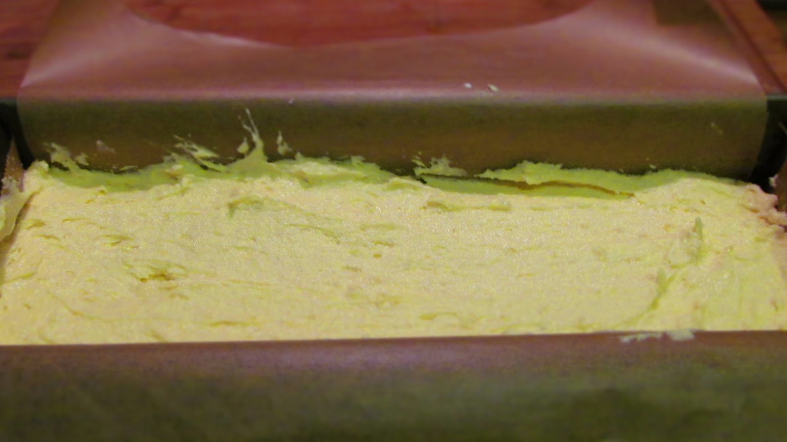 - Продълговата форма за кекс с размери 30х10 см намазвам с олио и покривам с хартия за печене, като отрязвам ъглите на хартията, за да не се набръчкват.