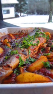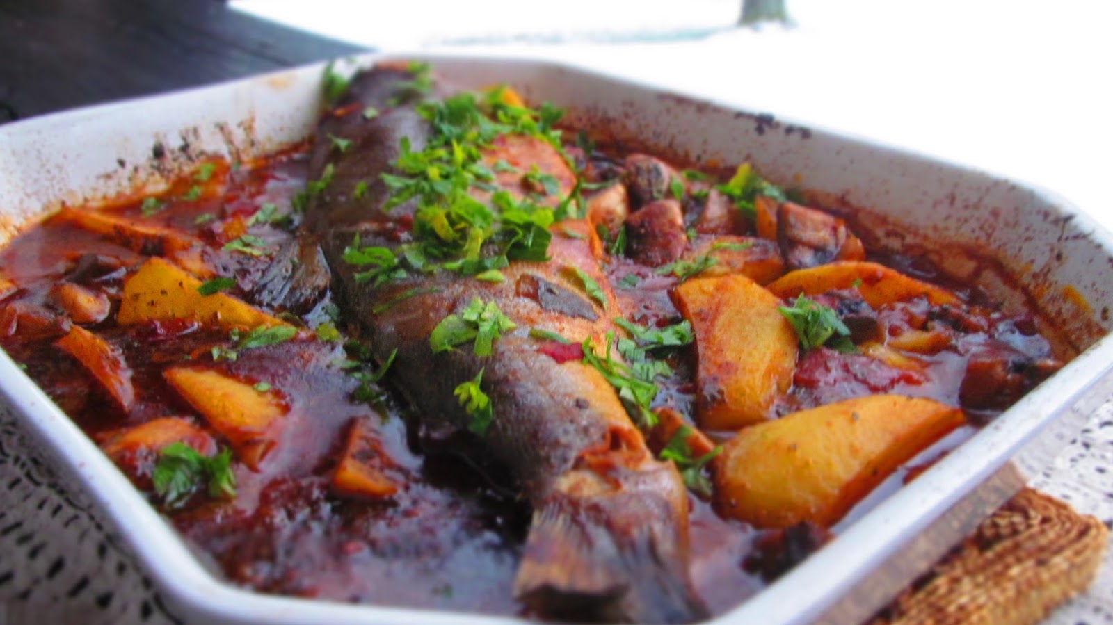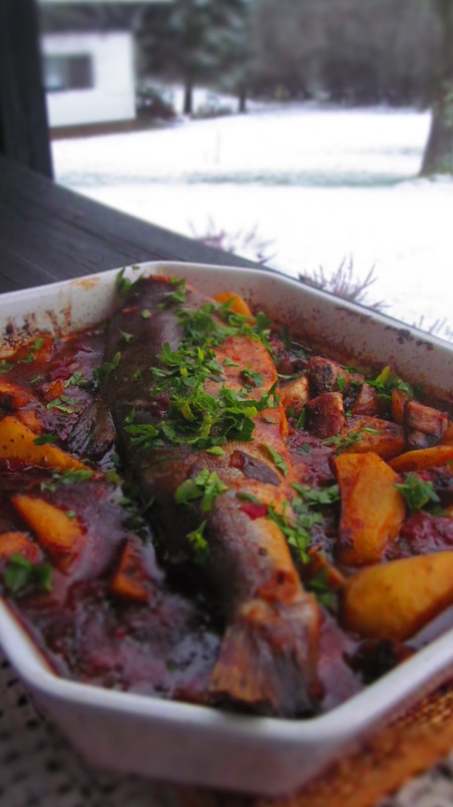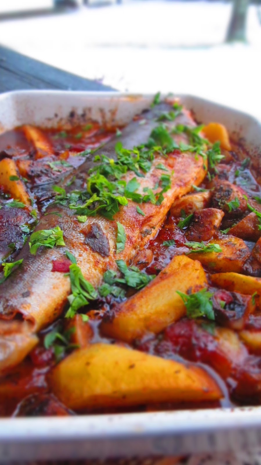 В днешния рибен ден приготвих дивата сьомга със зеленчуци, на фурна и по стара българска рецепта за цяла риба.