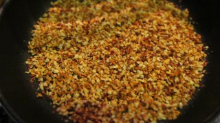 - В сух тиган изсипвам 100 гр от едро смлените лешници и ги запичам до златисто като непрекъснато раздрусвам тигана, за да ги разбъркам.