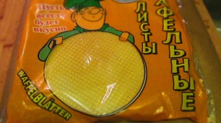 Та точно на тези рафтове Динко си избра някакъв колбас – сервилат с надпис „Коньячный“, а аз си избрах вафлени кори за торта, на които пишеше „Пуст всегда будет вкусно“. Този надпис пък ми напомни песента „Пуст всегда будет солнце“ и ме върна в детството, когато учехме руски език и пеехме в хора на училището.
