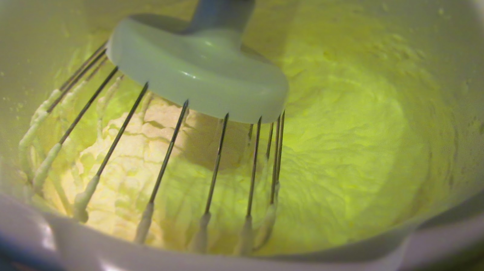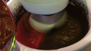 - Към разбитата сметана добавям на тънка струйка разтопения шоколад и продължавам да разбивам с миксера.