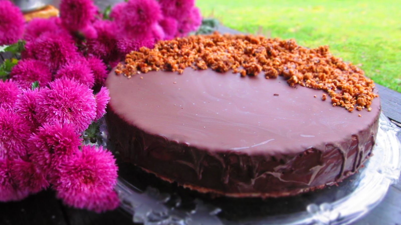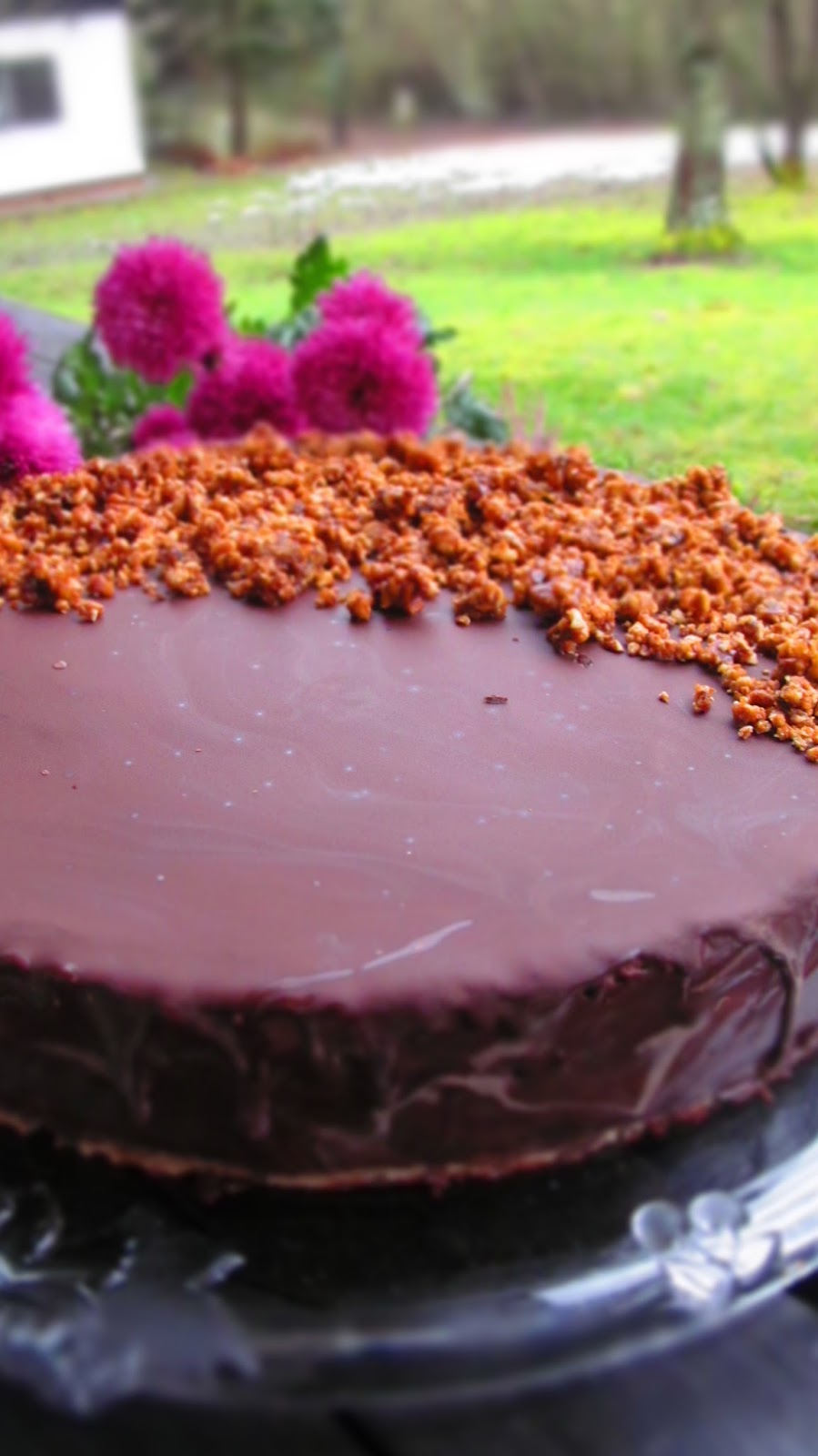 - Изваждам тортата от хладилника, свалям ринга и я заливам с шоколадовата глазура.