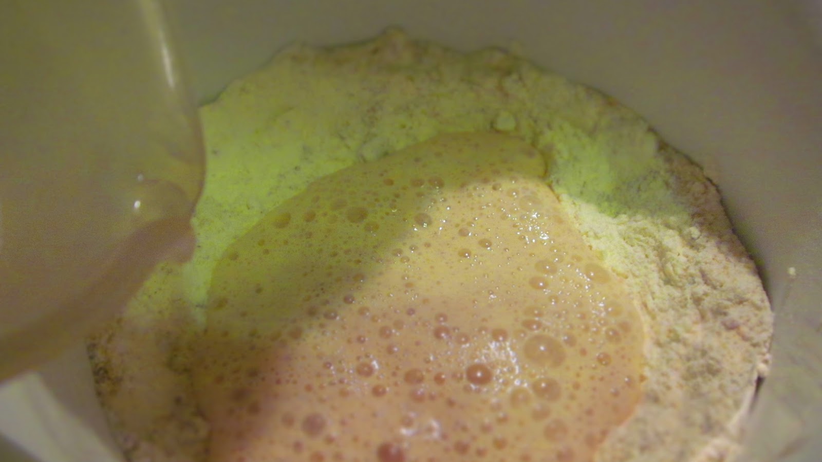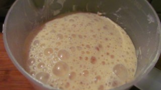- Започвам разбъркването с миксер и накрайниците за тесто като добавям и топлото прясно мляко и рома.