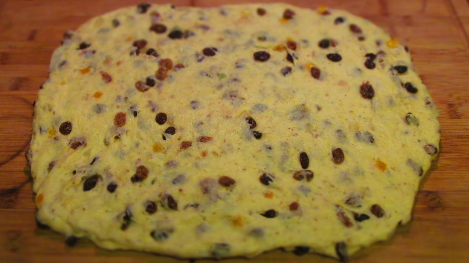 - След около 40 до 50 минути тестото е втасало и разточвам на дебела кора с размер 20х30 см.