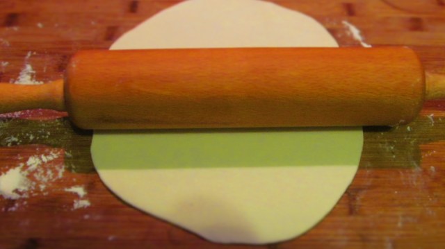 - Тестото разточвам на три кръга с размер 26 см в диаметър.