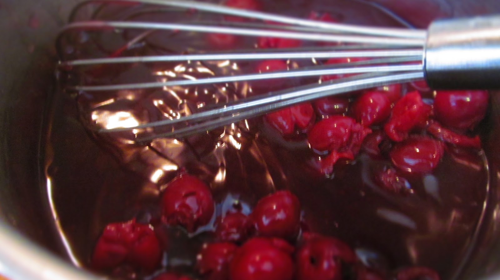 - Когато гъстотата на черешовия сос ме удовлетворява, добавям и черешите.