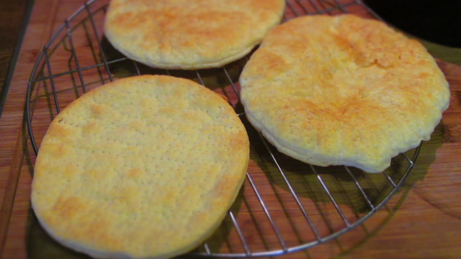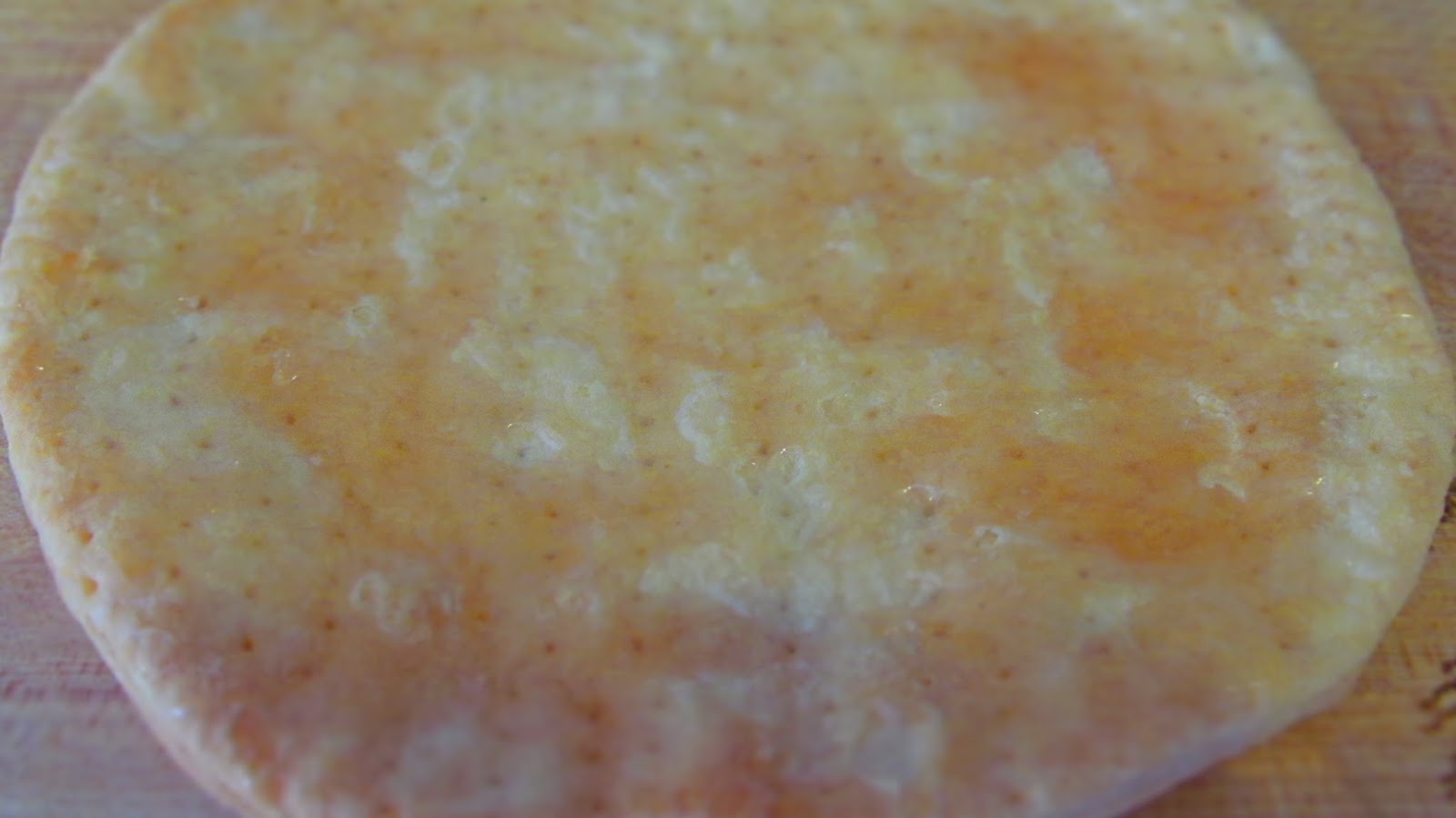 - Тестото разточвам на три кръга с размер 26 см в диаметър.