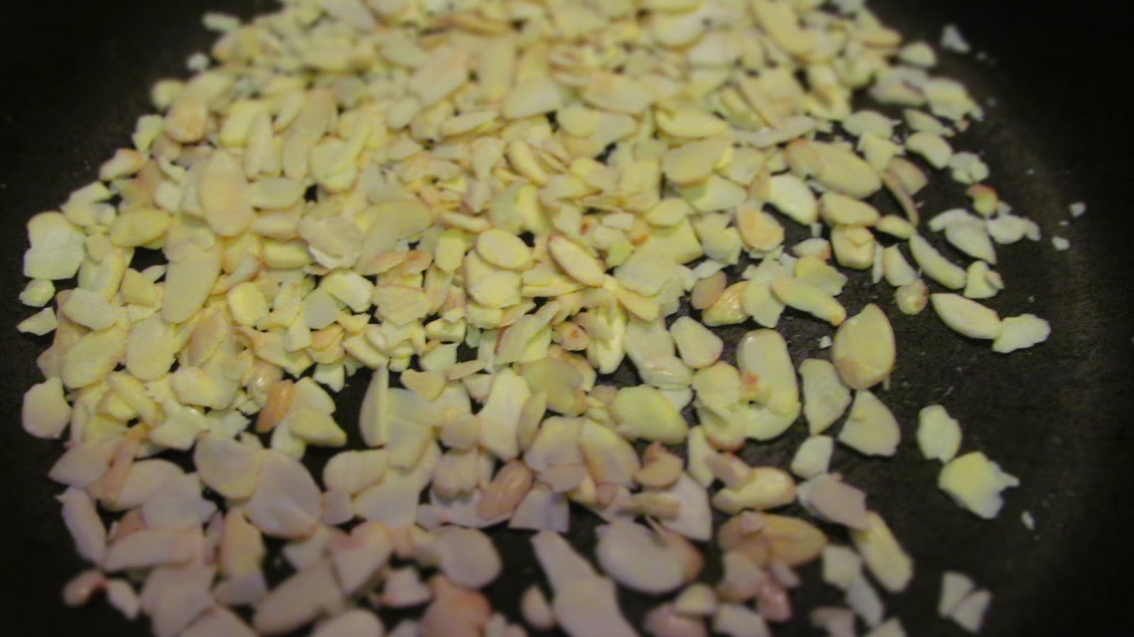 - В сух тиган запичам до златисто филираните бадеми. Охлаждам.