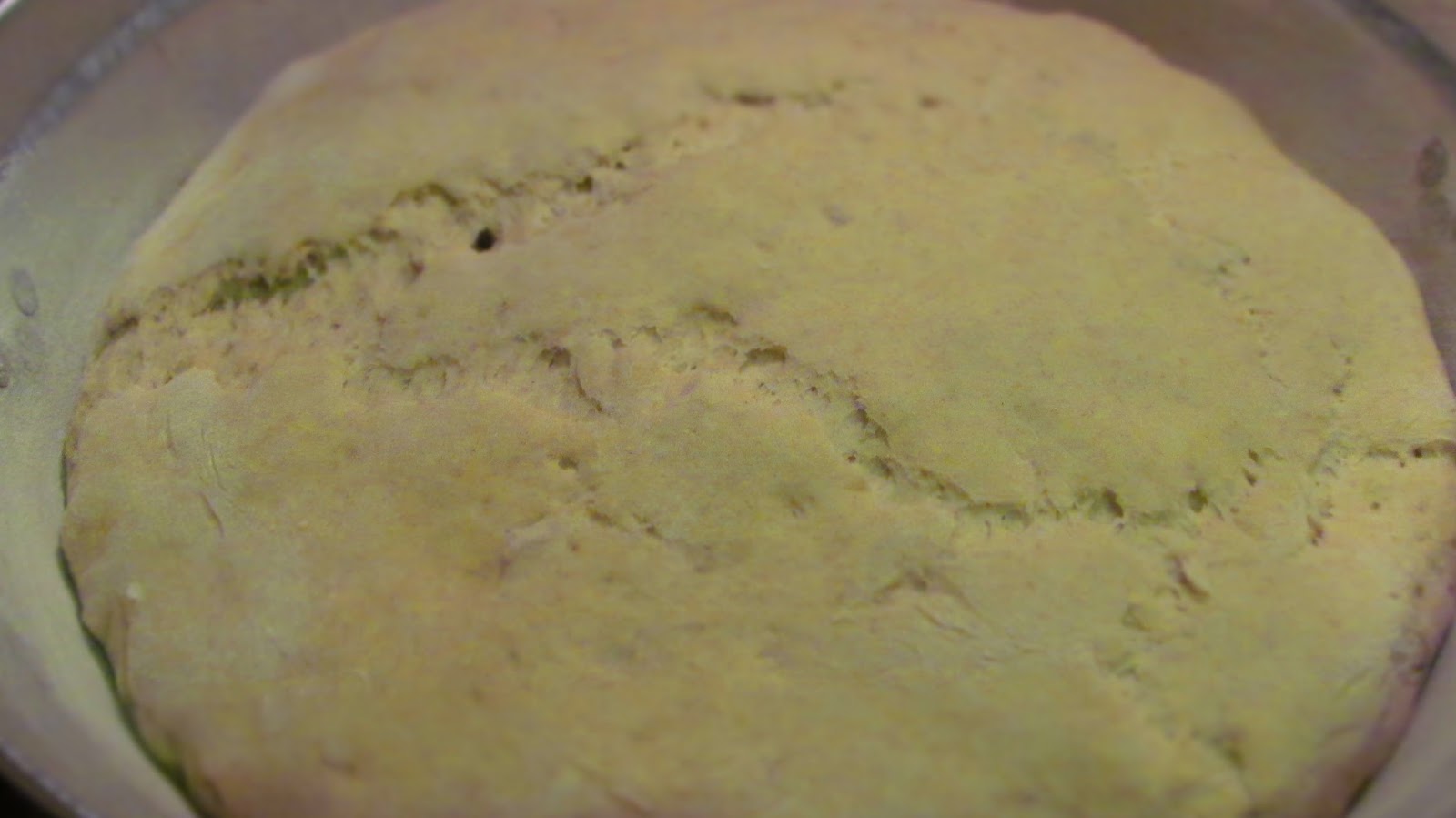 - След първото втасване, премесих отново тестото с набрашнени ръце и оформих на кръгъл хляб – самун, който поставих на дъното на електрическата тенджера /тавата/.