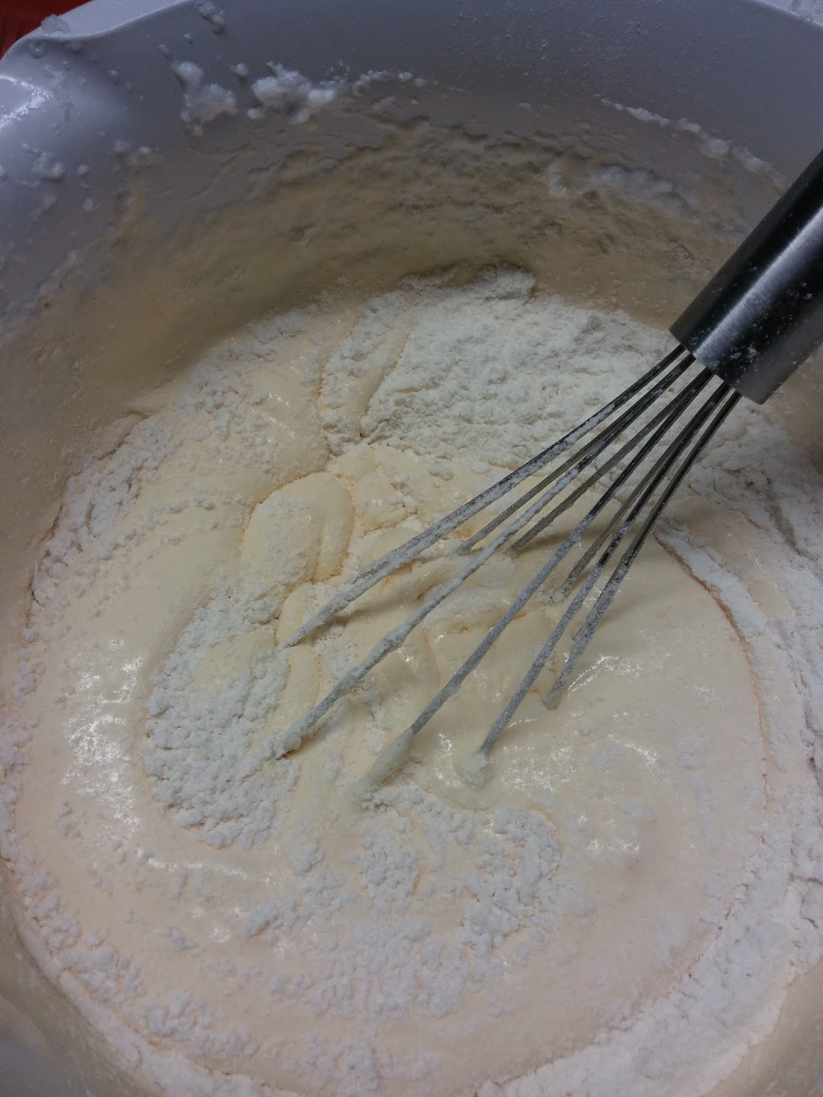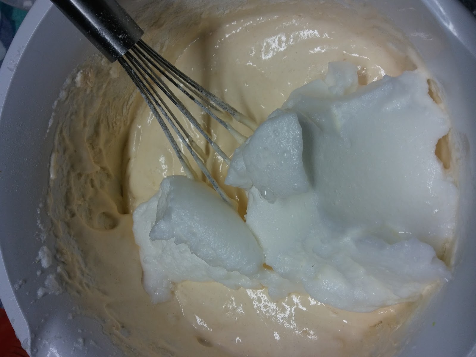 • Бъркам бавно и само с тел за разбиване като подхващам пухкавото тесто отдолу нагоре.