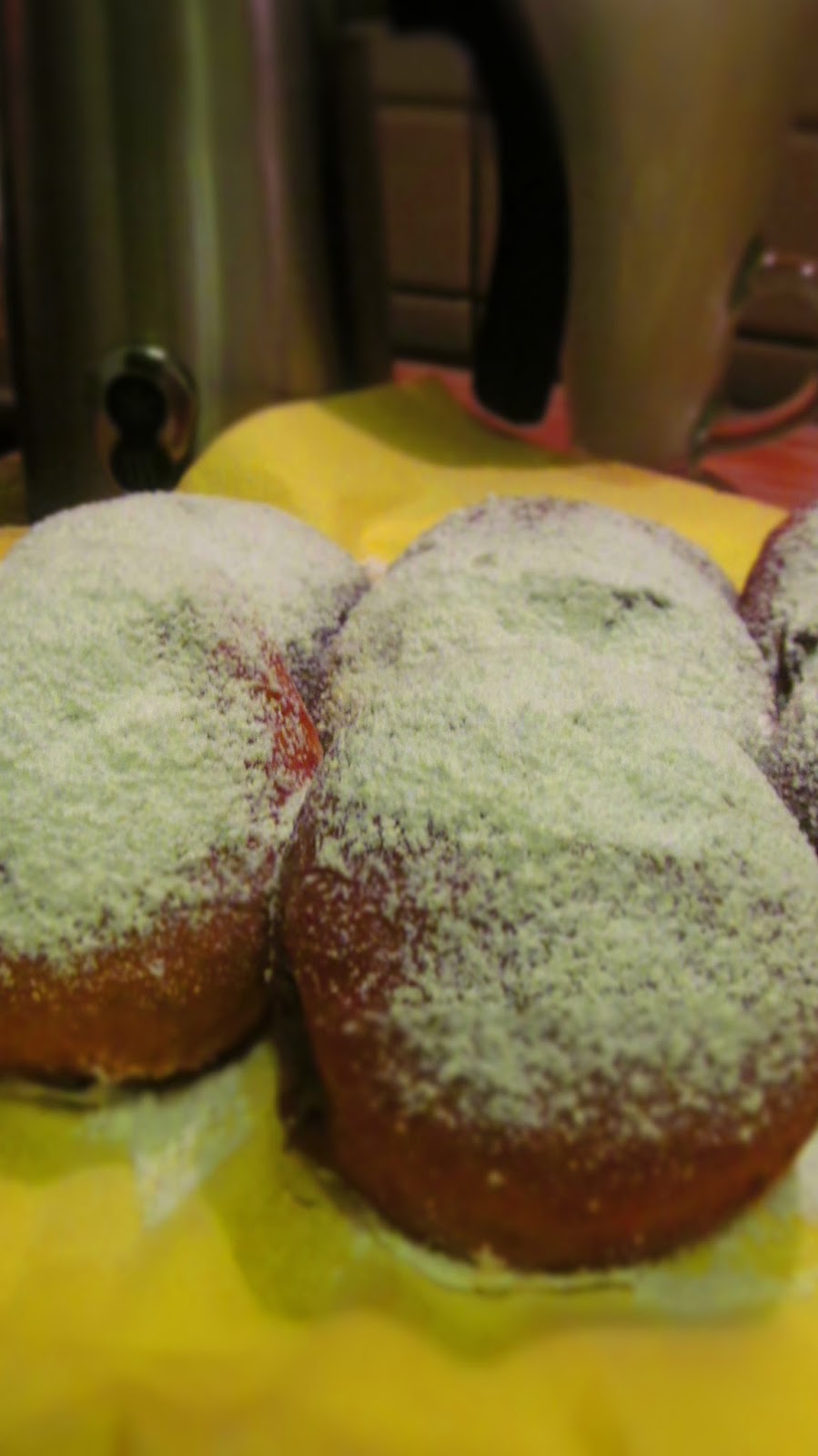 Аз знам само, че обожавам берлинери във всичките им варианти – без пълнеж, пълнени с ягодово сладко, с ванилов крем или пък с много шоколад. Както днес у дома! Берлинерите обаче са винаги поръсени с много пудра захар!