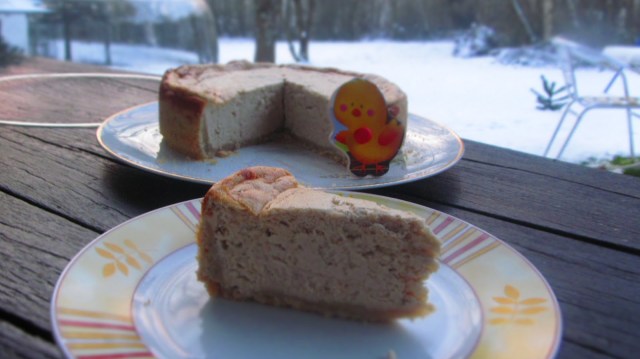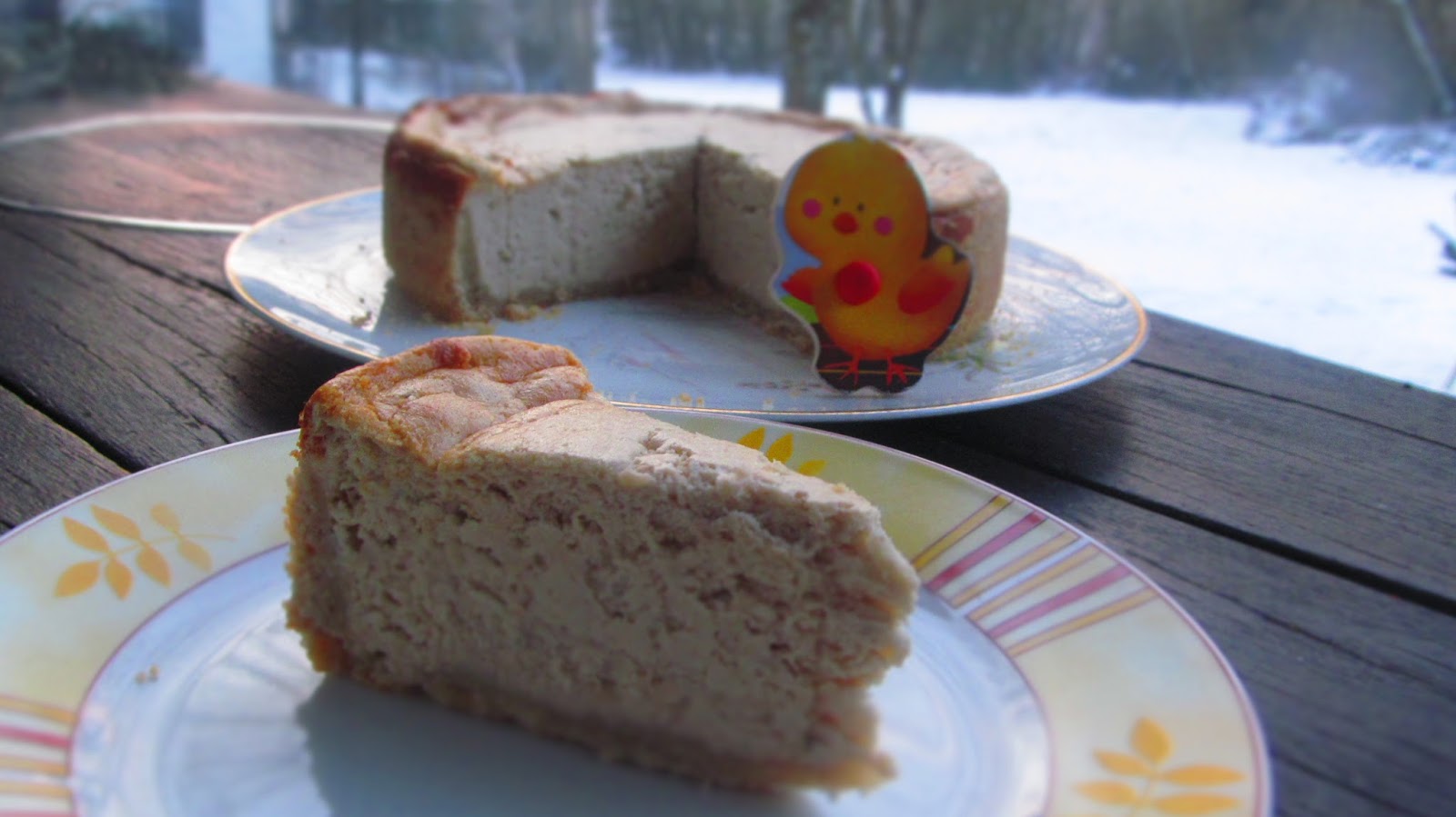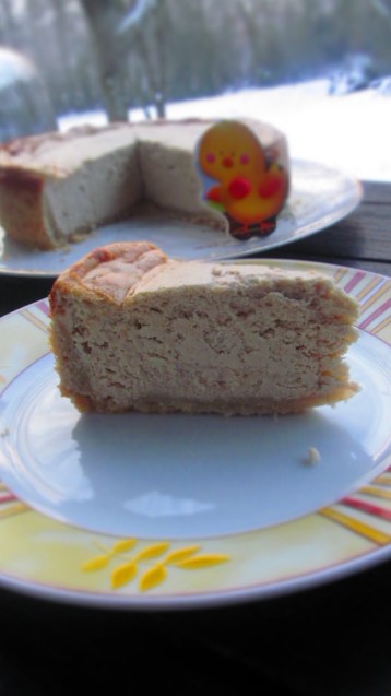 Да! Цветът не като на нормален чийзкейк и това е, защото заменяме захарта с банан. Той дава едно допълнително оцветяване на сладкиша. Аз лично намачках банана с вилицата, но Вие можете да го пасирате. Опасявам се само, че може да промени консистенцията. Или по-точно казано да станат тестото или крема по-редки. Ако така се случи – добавете брашно или нишесте, за да получите нужната консистенция. Все пак банана не замества на 100 % липсата на захар, но пък и бебетата не познават нейния вкус. За тях е добре на сладост! Дано само да не се изненадат от тази нова за тях консистенция! Все пак до сега са получавали само каши.