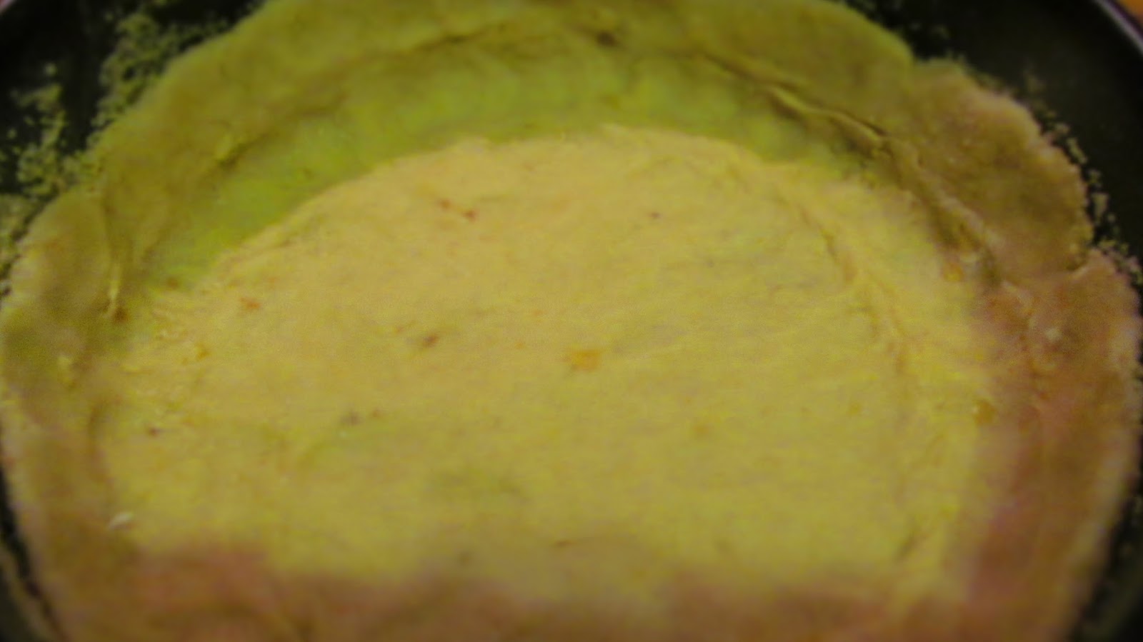 - Готовия крем изсипвам върху тестото и заглаждам.