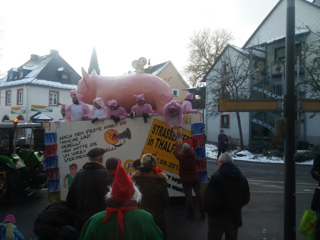 Споделям с Вас част от карнавалното шествие в селото, в което живеем. То има само 1800 жители, но почти всички бяха на улицата. Цялата организация е на доброволни начала. Костюмите и платформите се приготвят от самите участници. Музиката е много силна, а за всички зрители има много лакомства, бира, ракия и други подаръци.