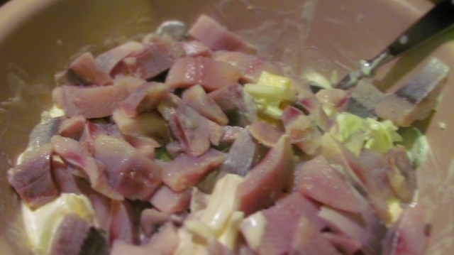 - Маринованата херинга оставям за 1 час в студена вода, за да се обезсоли малко. Ако имате сос в опаковката – не го изхвърляйте. Може да се добави към соса за допълнително овкусяване.