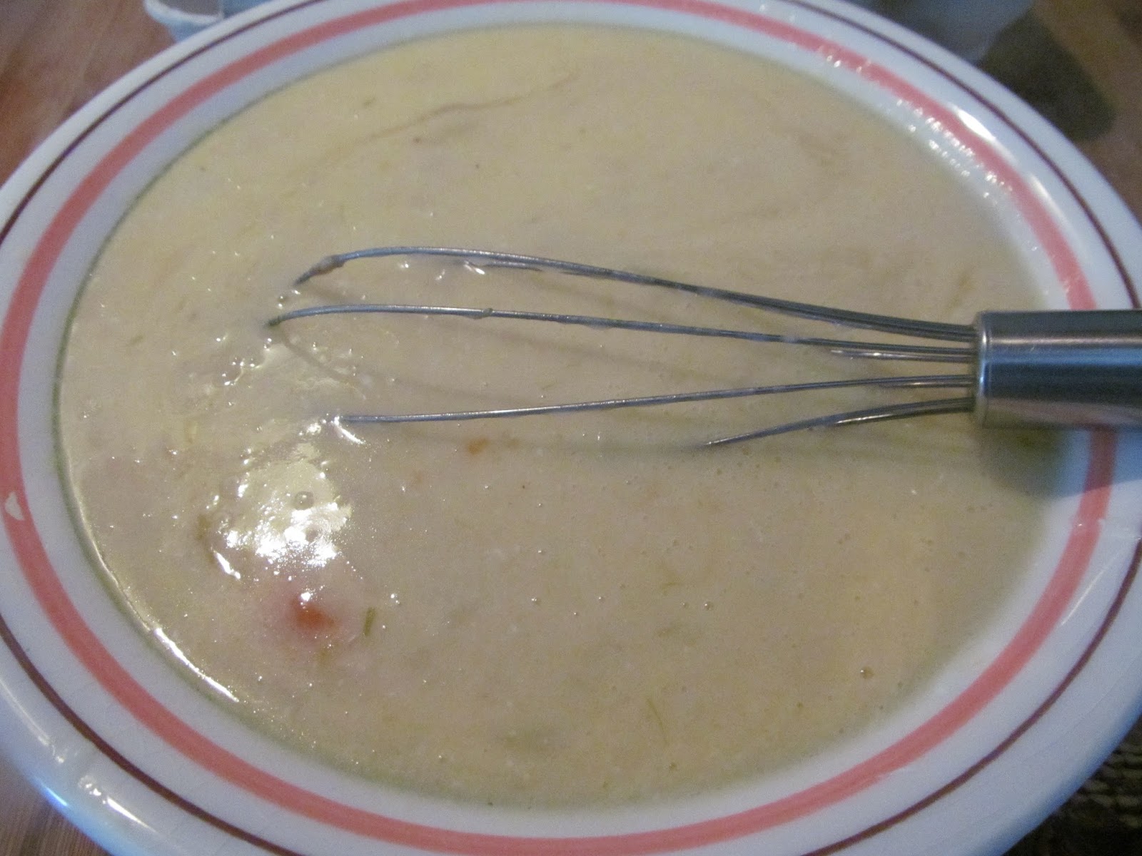- Сосът добавям към яйчената смес на тънка струйка и с непрекъснато разбъркване.