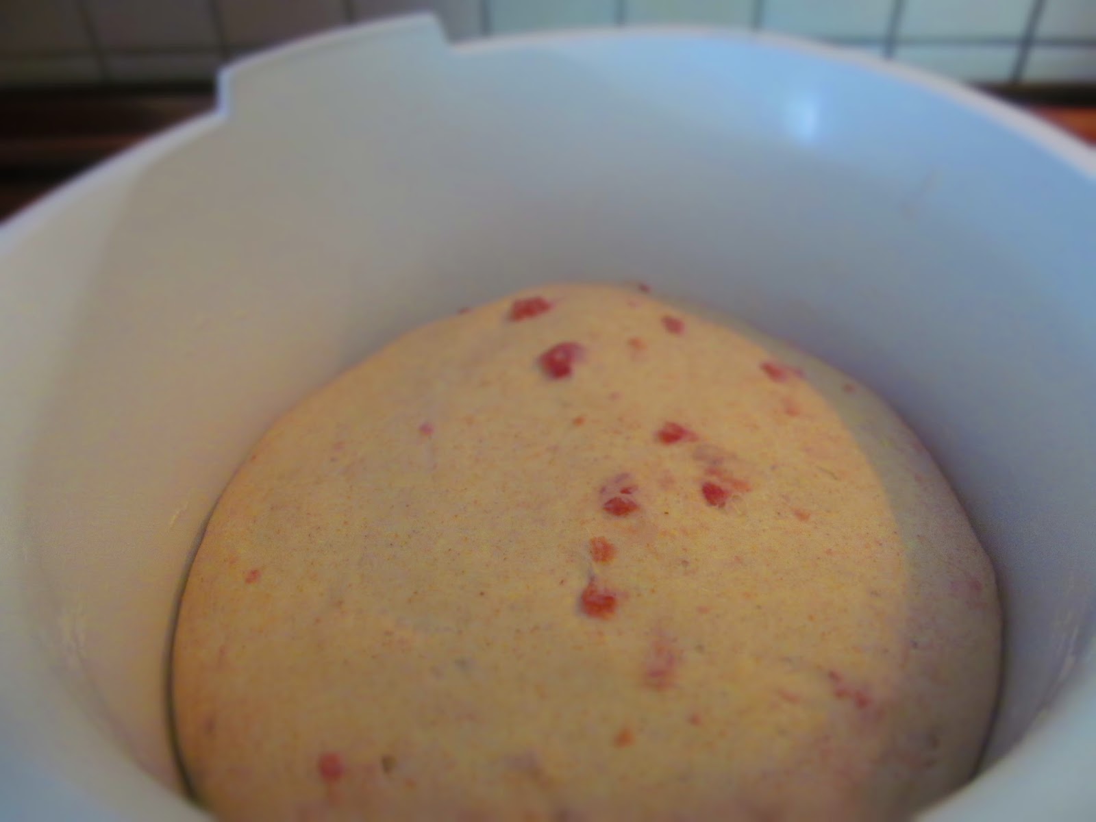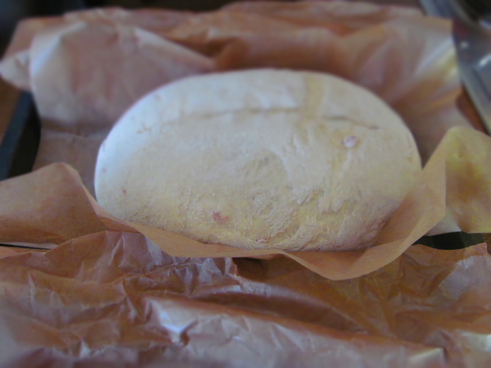 - А , за да запази формата си и да не се разлее в страни, защото нямам форма за хляб – просто навивам малко хартия в двете страни на хлебчето. Така то запазва формата си и втасва във височина.