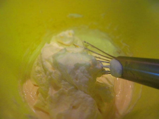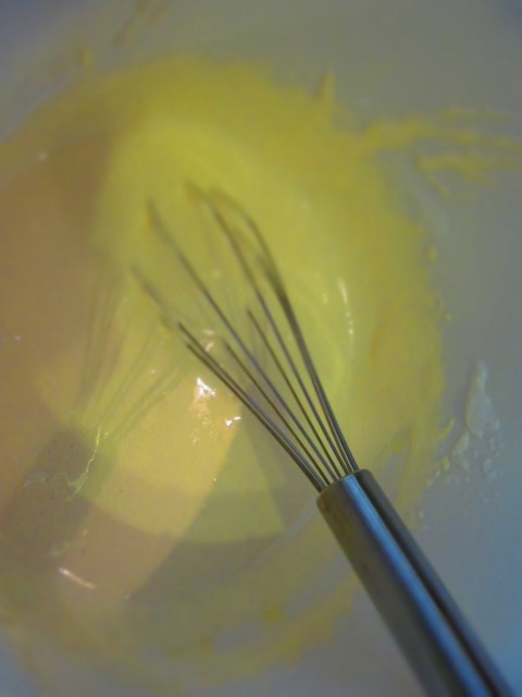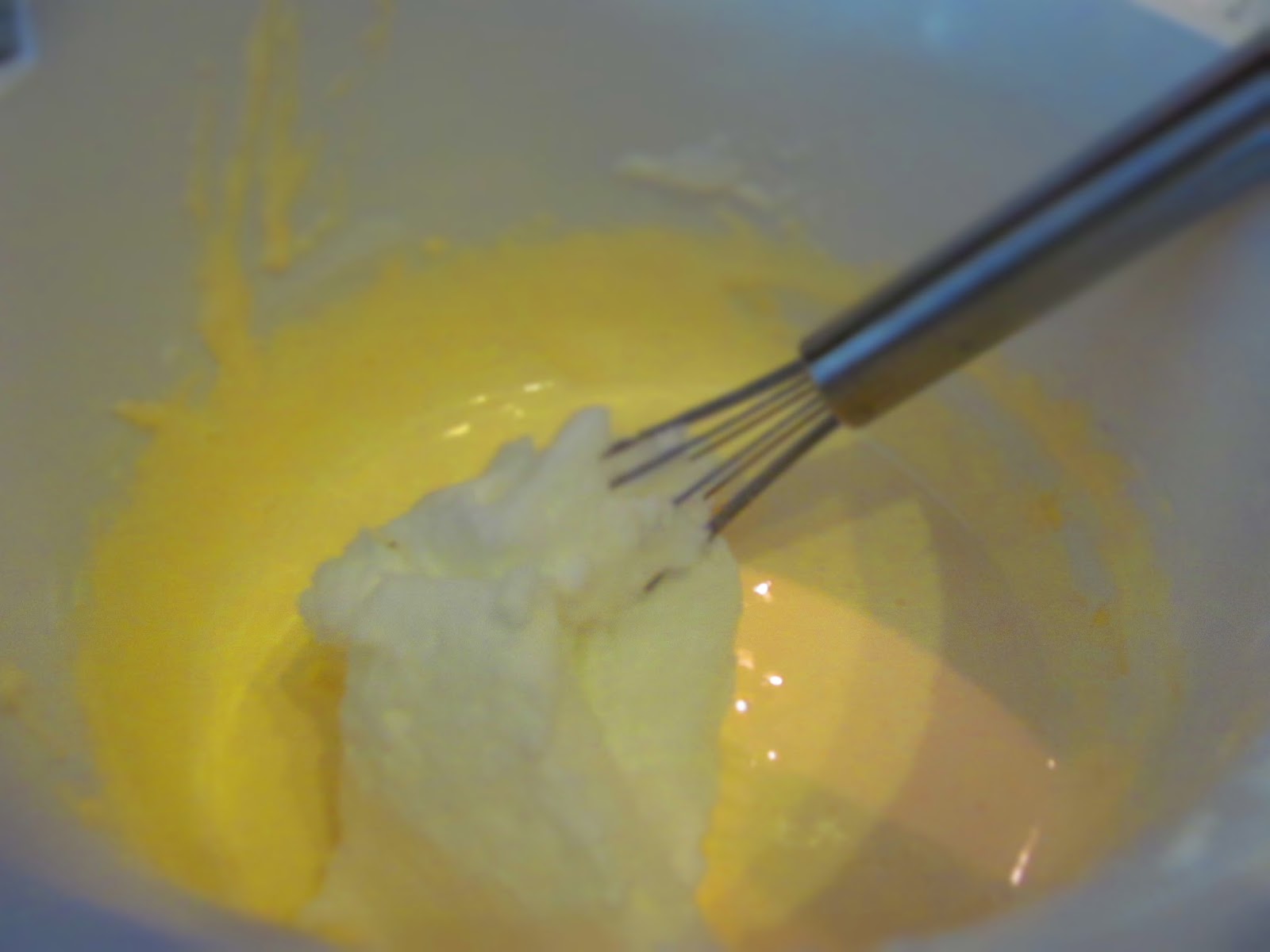 - Винаги започвам първо с малко от белтъците. Бъркам много бавно и внимателно с тел за разбиване като се старая да бъркам в една посока и да движа тела отдолу нагоре.