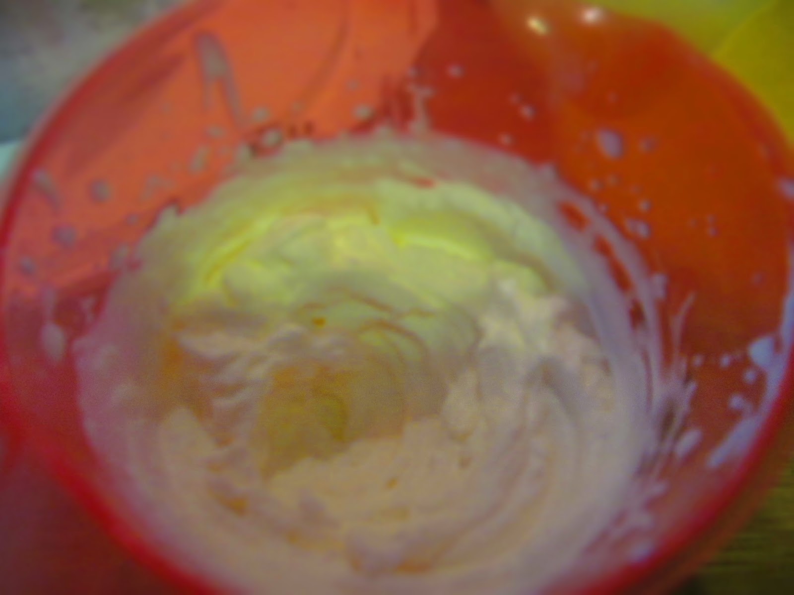 - Разбитите белтъци пресипвам в друга купа и без да измивам купата на миксера, разбивам в нея жълтъците с водата и захарта. Разбиването е до получаването на пухкав крем, който от жълт става почти бял.