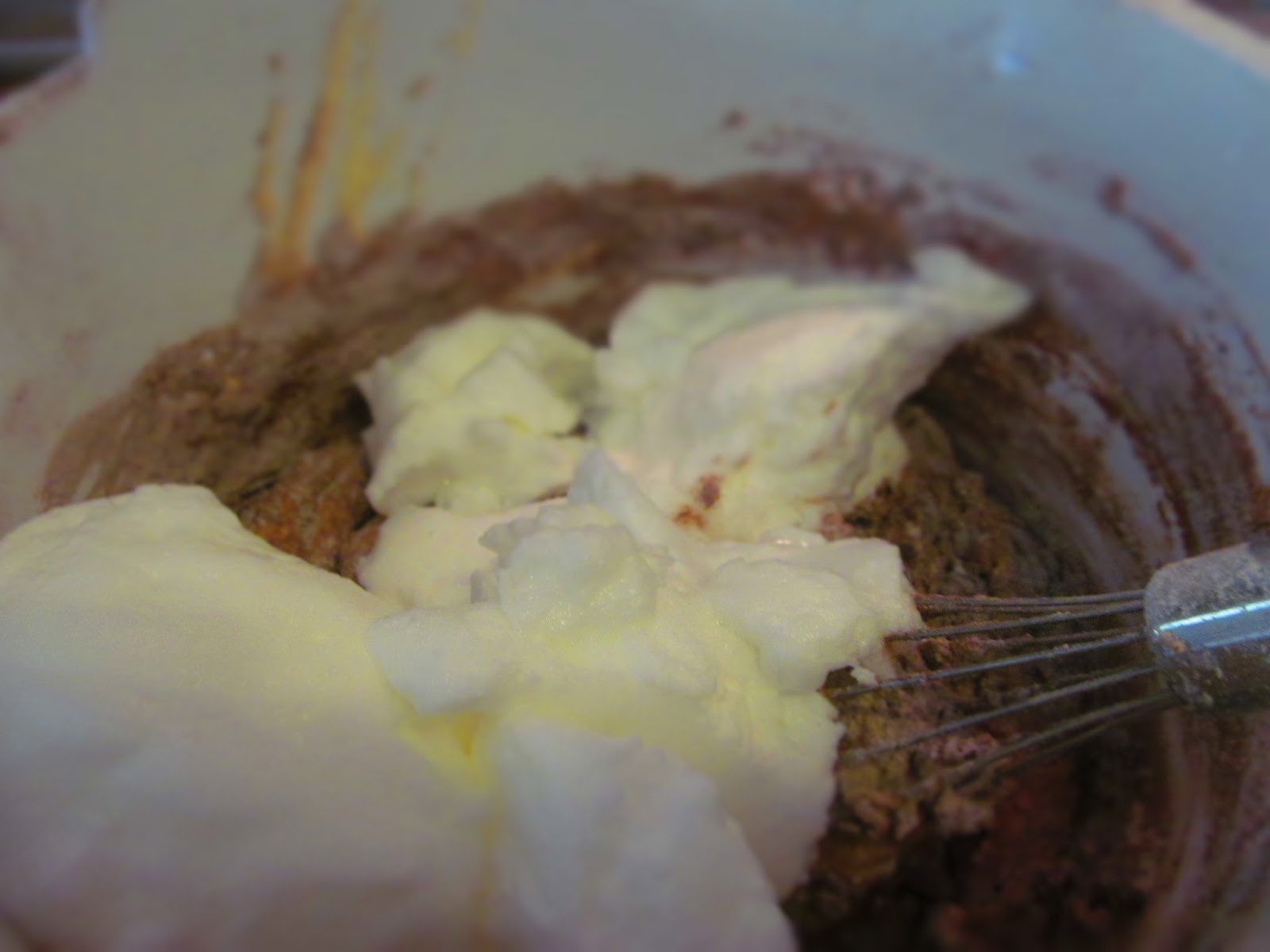 - Към този крем започвам по малко да добавям от разбитите белтъци и смесеното с бакпулвера и какаото брашно. Брашното пресявам задължително.