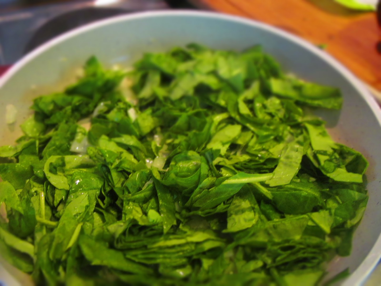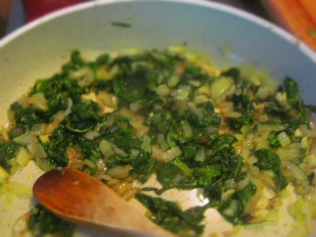 - Добавям измития, изцеден и нарязан на едро спанак.