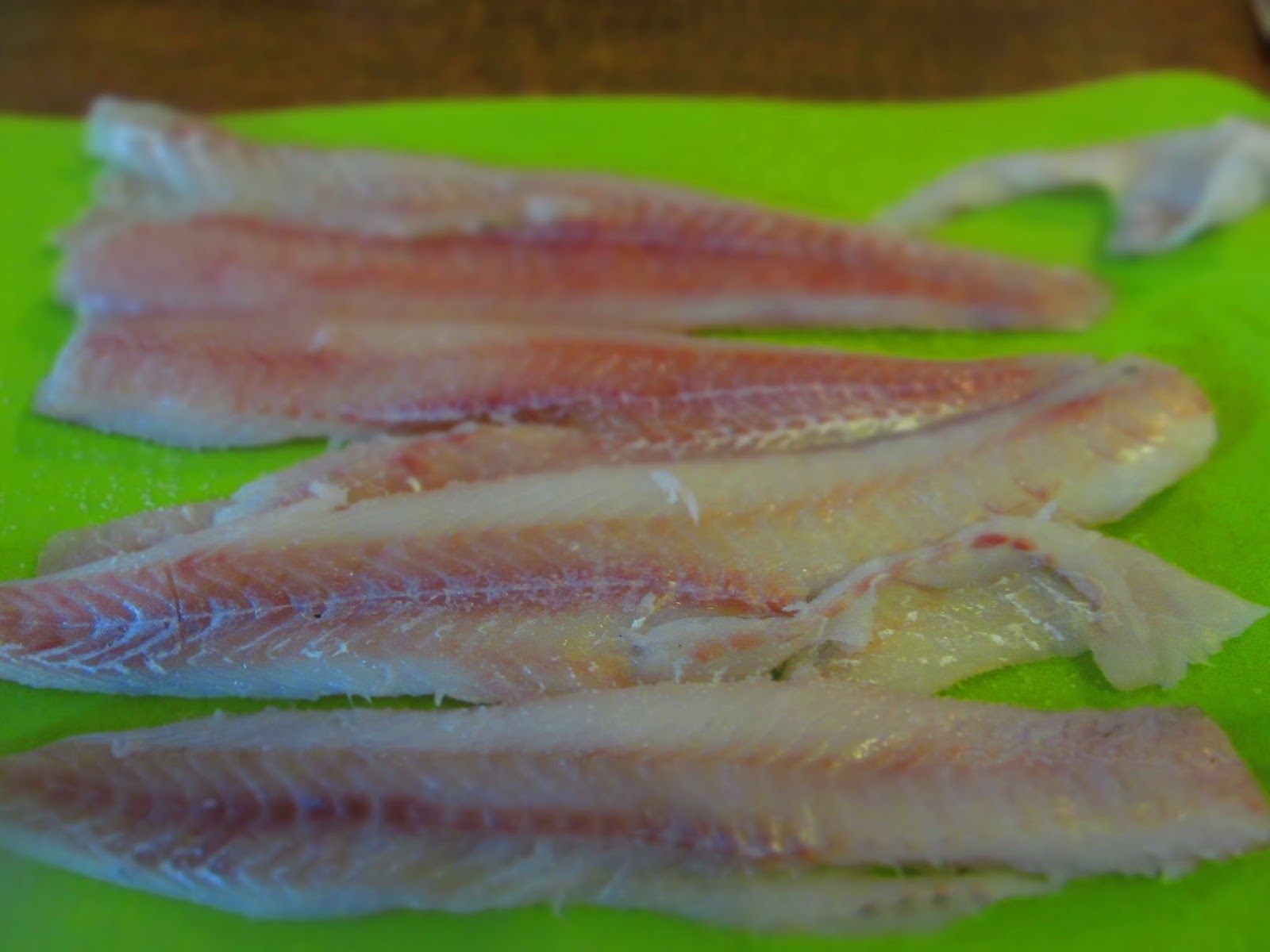 Подсушавам измитата риба и я напръсквам с лимоновия сок и съвсем лекичко посолявам.